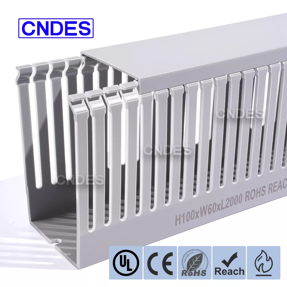 Precision Slot- Precision Grooving – ท่อ PVC คุณภาพ 100×60 สำหรับแผงไฟฟ้ามีการออกแบบร่องที่สม่ำเสมอ ช่วยให้สายเคเบิลออกจากตำแหน่งใดก็ได้อย่างหมดจด มีรูปแบบรูแบบกำหนดเองให้เลือกเป็นตัวเลือก