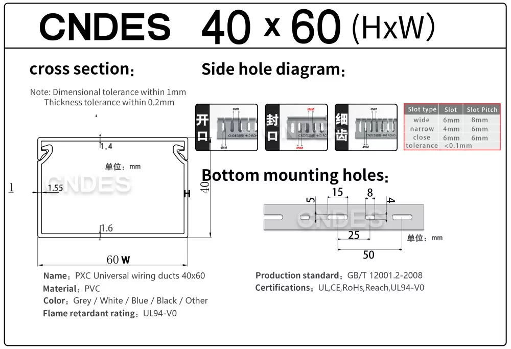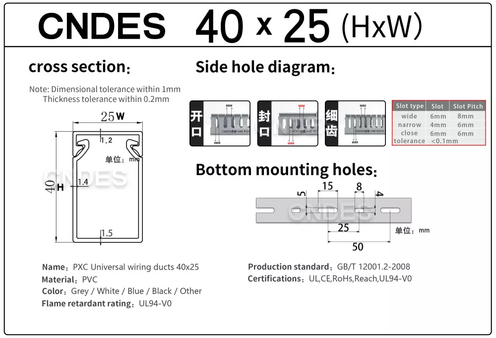 CNDES เป็นผู้นำผู้ผลิตและซัพพลายเออร์ท่อเดินสายไฟ PVC แบบ Slotted ที่นี่เราจะแนะนำถาดสายเคเบิลความสูง 40 มม. ของเรา รวมถึง 40*25, 40*30, 40*35, 40*40 และ 40*60