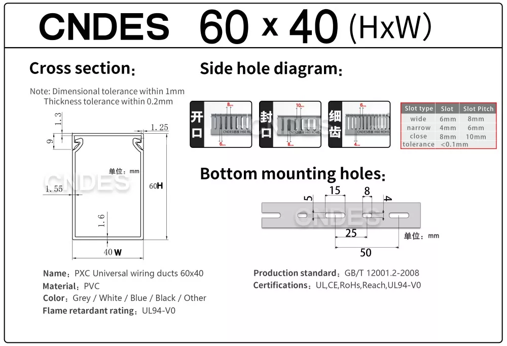ในฐานะโรงงานท่อสายไฟ PVC ทนไฟขนาด 60 × 40 แบบกำหนดเองที่มีประสบการณ์ในประเทศจีน CNDES รับประกันว่า: