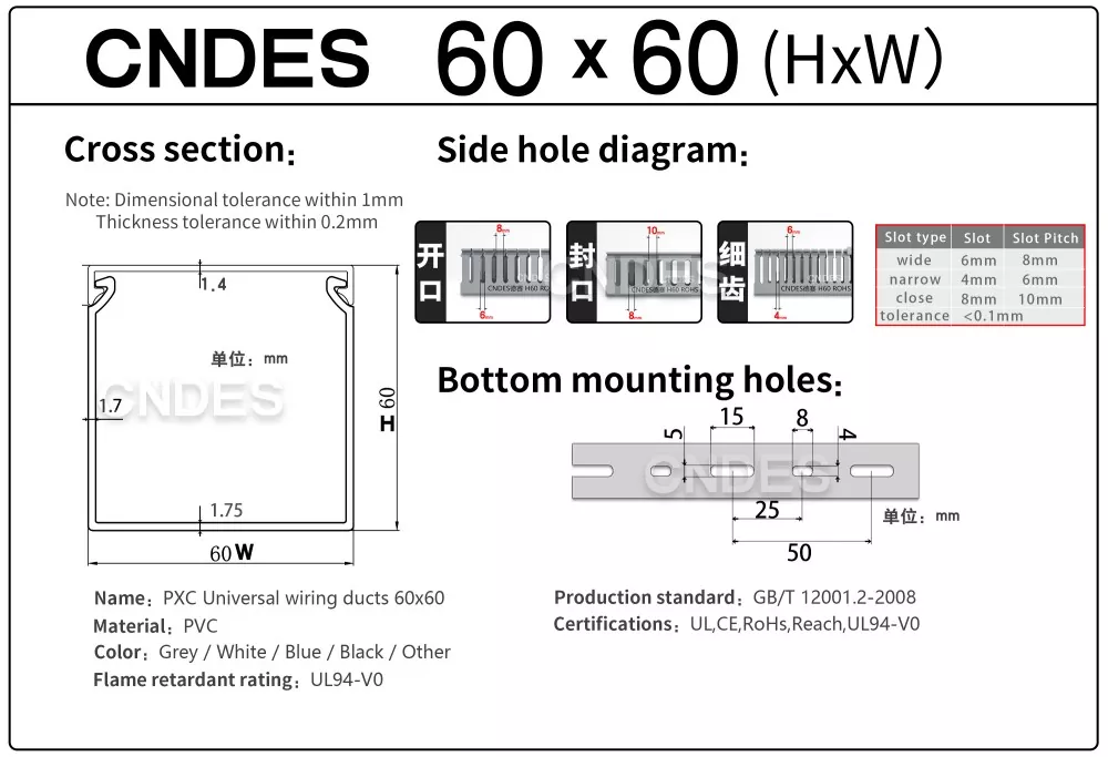 ด้วยโปรไฟล์สี่เหลี่ยมจัตุรัสที่สมดุล ท่อสายเคเบิล PVC ขนาด 60×60 รองรับสายไฟ สายไฟควบคุม และสายสัญญาณได้อย่างมีประสิทธิภาพ ในขณะที่ยังคงรักษาการแยกที่ชัดเจนและเข้าถึงได้ง่ายภายในตู้ควบคุม