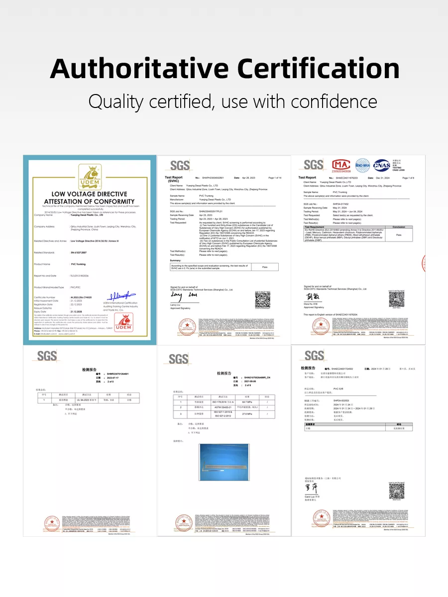 การประกันคุณภาพ: ท่อสายเคเบิลอัตโนมัติ PVC แบบ Slotted ความสูง 80 ประสิทธิภาพสูงทั้งหมดได้รับการรับรองภายใต้ UL, RoHS, REACH, ISO, CE และมาตรฐานอื่น ๆ ที่ตรงตามข้อกำหนดด้านสิ่งแวดล้อมและความปลอดภัย สำหรับปัญหาด้านคุณภาพ (เช่น การแตกร้าว การเสียรูป) ซัพพลายเออร์จะให้บริการส่งคืน/เปลี่ยนสินค้า